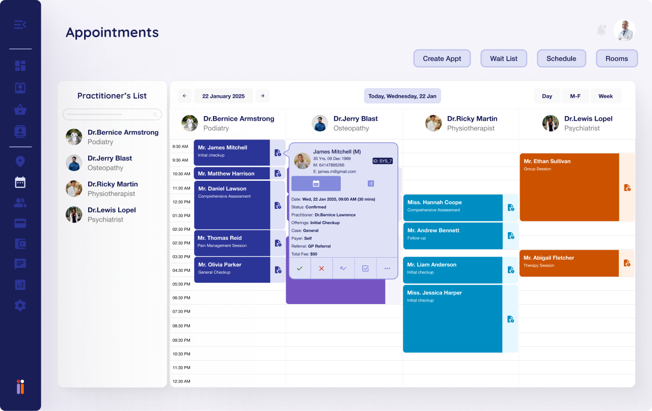 Effortlessly centralise your operations with our platform. Manage multi-location practices, practitioner details, and patient records seamlessly from a single interface. Streamline administrative tasks, enhance coordination,